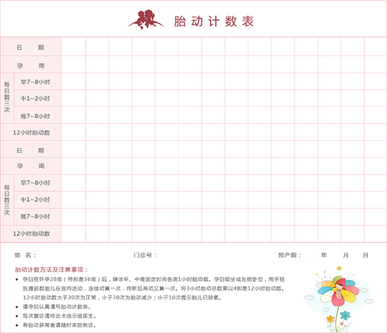 请孕妇认真填写胎动计数表。