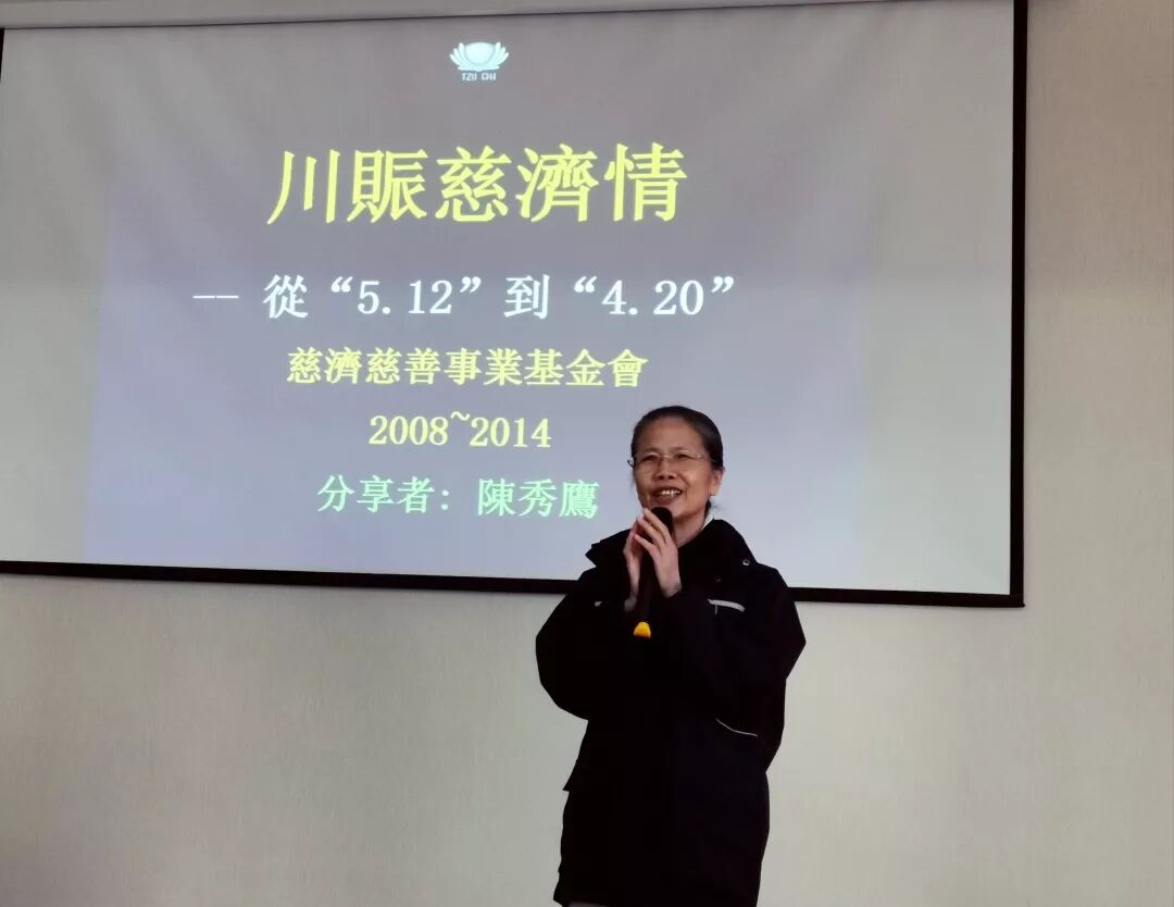 第四部分:陈秀鹰老师为我们带来的《川震慈济情》,为我们播放了5.12抗震救灾的视频短片,感受到浓浓的中华儿女抗震救灾无私奉献的深情,生命因利他而丰富,在灾难面前,慈济大爱,捐款捐物、修建学校、义诊、公益环保,让我们在工作之外还可以做很多有意义的事情来帮助别人,把爱从一个人传递给另一个人,把爱从一个地方带到了另一个地方。
